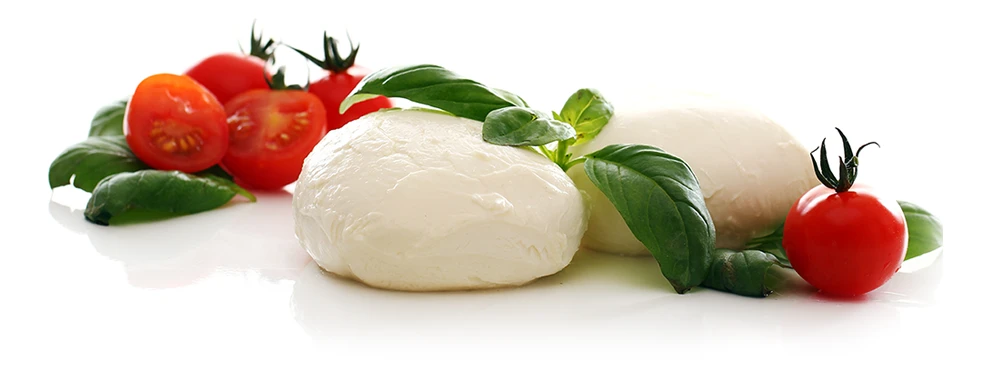 tomates cerises, tranches de mozzarella fiordilatte, huile d’olive, origan, basilic