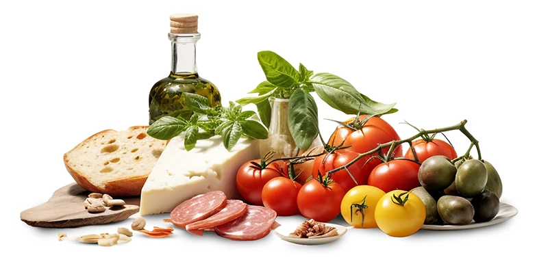 Jambon de Parme, tranches de mozzarella fiordilatte, roquette, tomates cerises, huile d'olive.