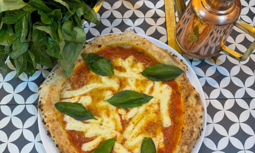 Sauce tomate, mozzarella fiordilatte, salami piquant calabrais nduja, huile d’olive, basilic