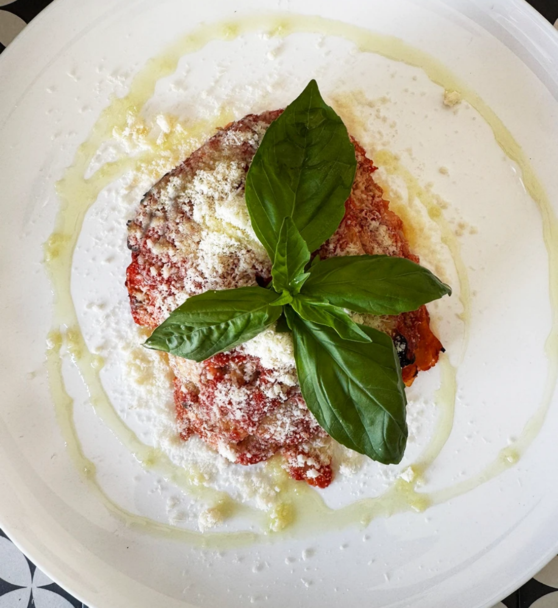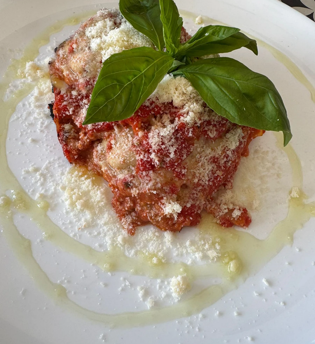 Sauce tomate, mozzarella fiordilatte, aubergines grillées, pecorino, cacioricotta, huile d'olive, basilic